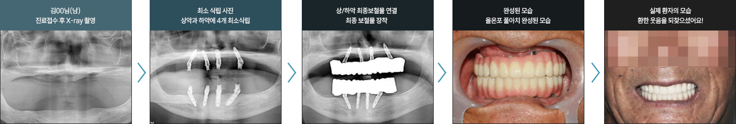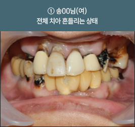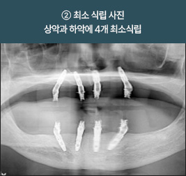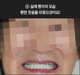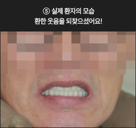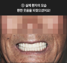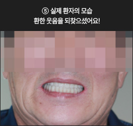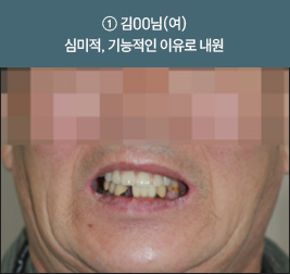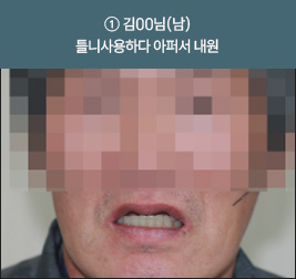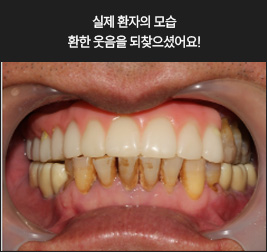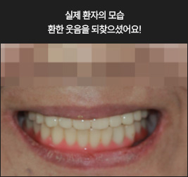 * 상기 사례의 경우, 해당 의료기관에서 진료를 한 환자분의 동의를 얻어 사용되었습니다. * 치료 전후의 사진은 동일 인물과 동일한 조건에서 촬영 되었음을 알려드립니다. * 모든 수술 및 시술은 개인에 따라 부작용고지 : 임플란트치료는 치료 후 감염, 염증, 연조직합병증, 출혈, 감각이상 등의 부작용이 있을 수 있습니다. 의료진과 충분히 상의 후 신중하게 결정하시기를 바라겠습니다.