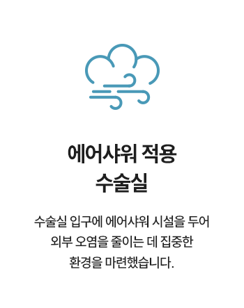 에어샤워 적용수술실 입구에 에어샤워 시설을 두어